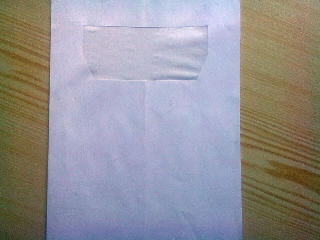 Do prvního papíru jsem vystřihl čtverec. Prázdné místo jsem vyplnil batistem (musí být napnutý) a zespodu jsem přilepil neporušený papír.