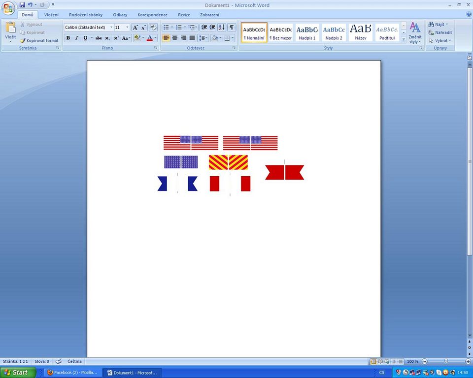 Na počítači jsem si v malování vlajky zkopíroval a upravil, aby byly pěkné. Pak jsem je zkopíroval do Wordu a tam je zmenšil na požadovanou velikost.