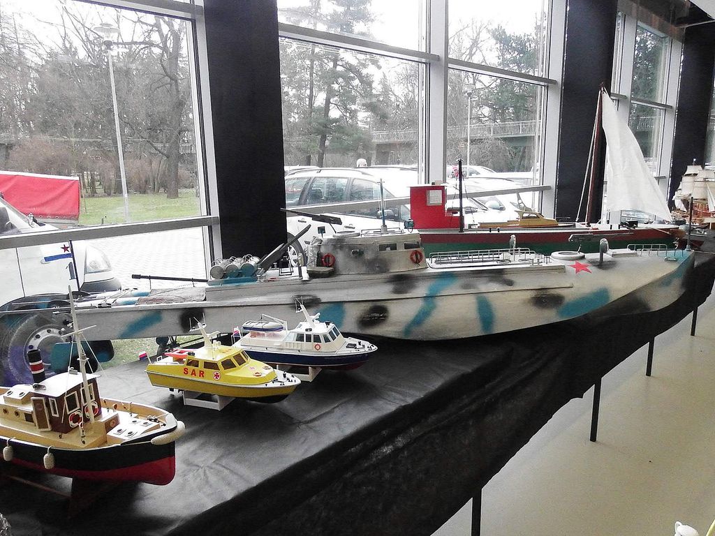 Kolem obvodových stěn pavilonu byly na stolech vystaveny modely historických plachetnic, jachet, rybářských a vojenských lodí. Velmi zajímavé byly vystavené modely raket. Další část stolů obsadily stále více se rozšiřující koptéry.