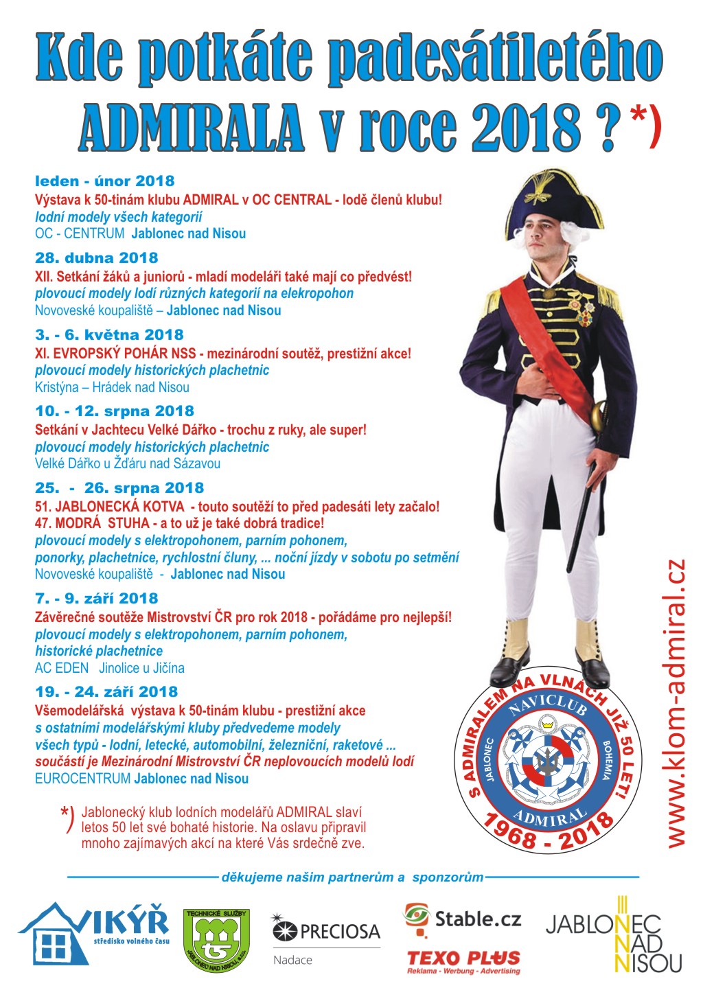Výstavu pořádal letos padesátiletý Klub lodních modelářů Admiral z Jablonce nad Nisou právě k tomuto svému výročí. Klub připravuje na letošní rok celou řadu akcí, tato výstava byla první, měla spíše komorní ráz, protože byly vystavovány pouze modely členů klubu.