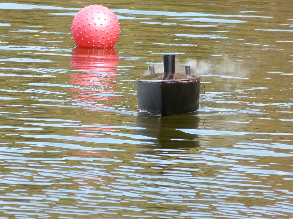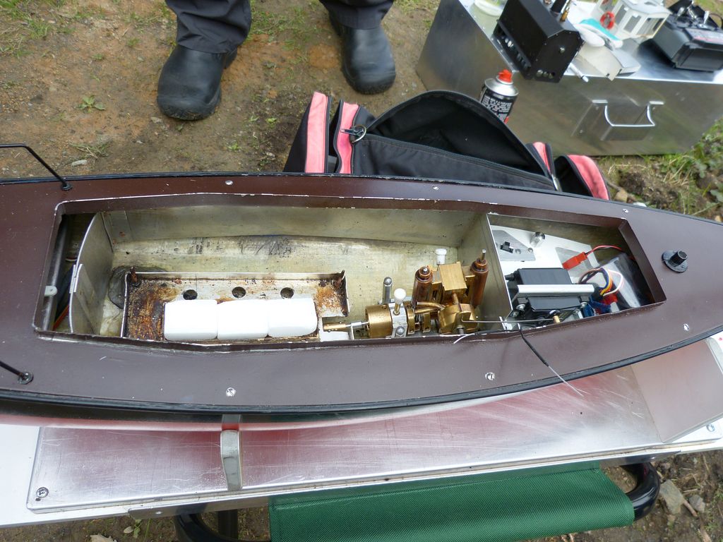 Kolem modelů na páru je třeba dbát na bezpečnost - malý požár zachvátil okolí strojovny Petra Stejskala poté, co vytekl líh. Petr Stejskal z Lipenců u své Turbinie předem počítal s případným potopením - záchranný kruh vybavil kouskem stočeného provázku, aby byl model snáze k nalezení.