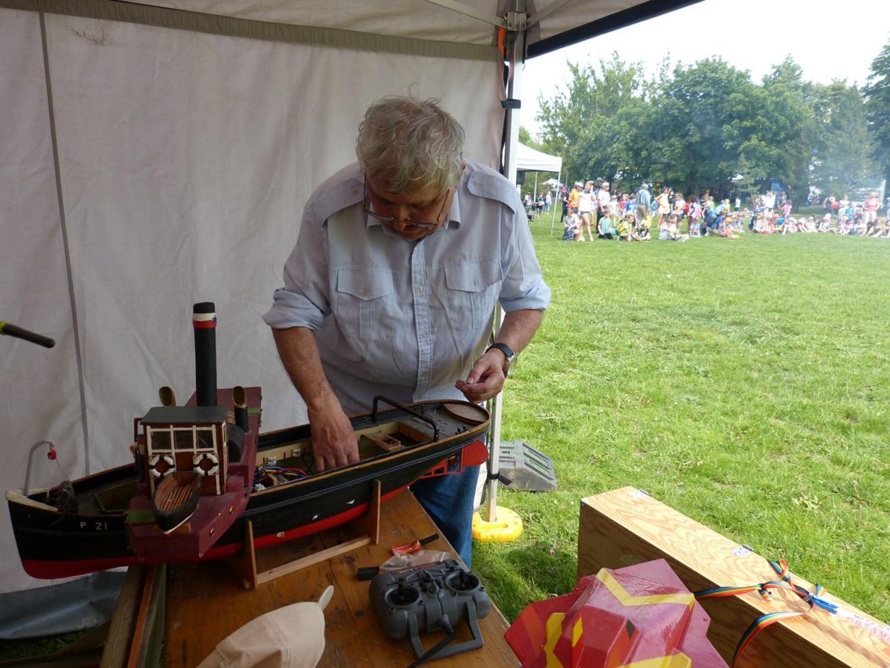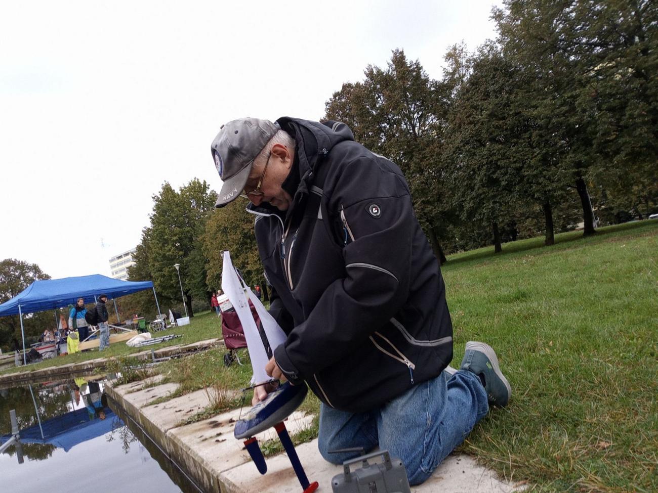 Jak na fotografiích vidíte, nebyl žánrově vyhraněný. Když frčel Tug Towing, stavěl remorkéry, když se rozjel Minisail.cz, byla to plachetnice HMS Speedy. Tu nám ukázal asi jen v létě 2017 na Proseku, o něco častěji vzal k vodě Footynu. S tou ho máme zachyceného naposledy, když mezi nás přišel na Podzimní Prosek 2024. To už měl hotovou i ponorku a oprášil polostavebnici parního stroje z odlitků… Prostě modelařil do posledních chvil a ještě 23. prosince nad ránem se naposledy přihlásil na náš chat.