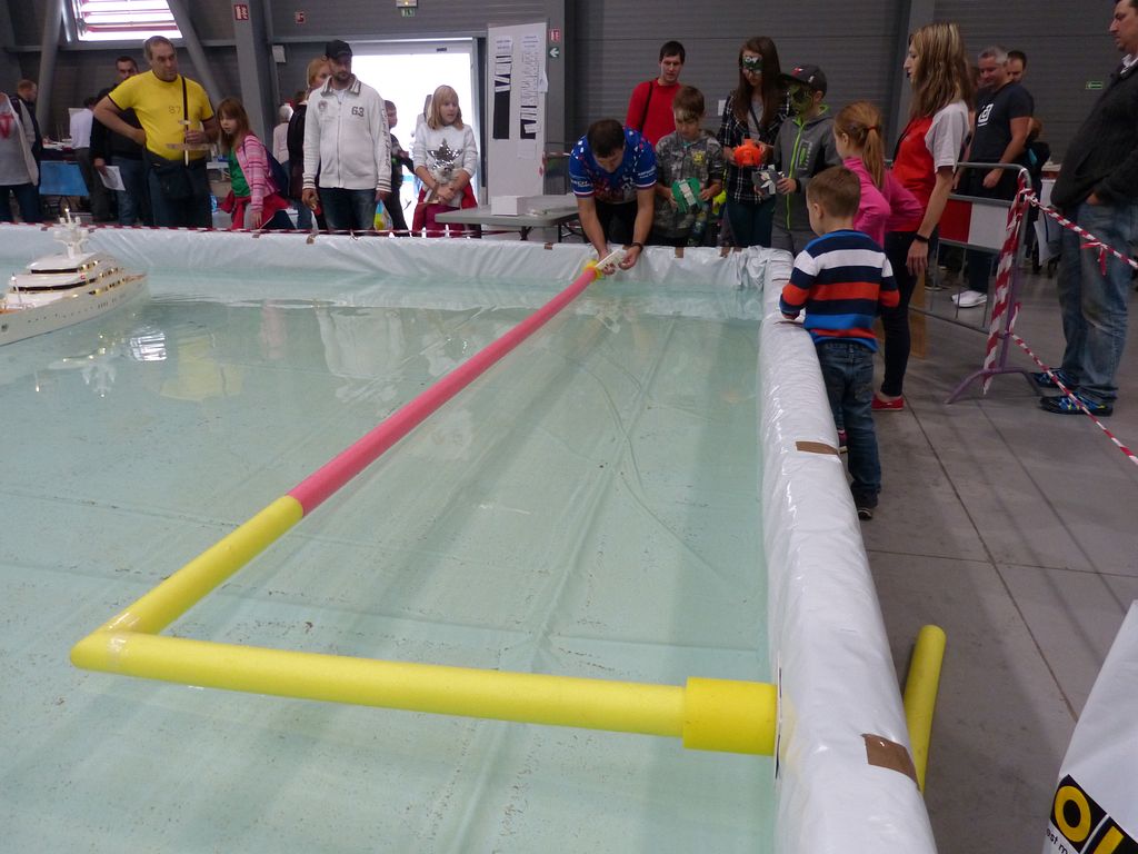Na výstavišti v Letňanech se až na pár posledních mohykánů nic moc zakoupit nedalo. Novinkou oproti minulým ročníkům bylo, že expozice modelů lodí německého klubu IGS Marktschwaben nebyla přímo kolem něj, nýbrž přes uličku. Diváci tak mohli, pokud by na to přišlo, obstoupit bazén z více stran. Zda v některou chvíli kolem bazénu postával dav, nedokážu říct. Ale v sobotu odpoledne tam žádné velké davy nebyly, třebaže se lodní modeláři o provoz na vodě snažili ze všech sil.