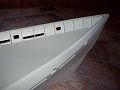 Teď už nezbývalo než dopilovat otvory, které zasahují do vrchní části a celek vytmelit a vybrousit. Nakonec mě ještě napadlo nasimulovat „housenku“ sváru mezi vrchní a spodní částí bortu. Na fotkách byla celkem výrazná. Vzal jsem tedy tenký drát, nastříhal z něj kousky pasující mezi vzpěry, a epoxidem nalepil na své místo. (Na obrázku už je bort po nástřiku plničem, bohužel nemám jiné ).