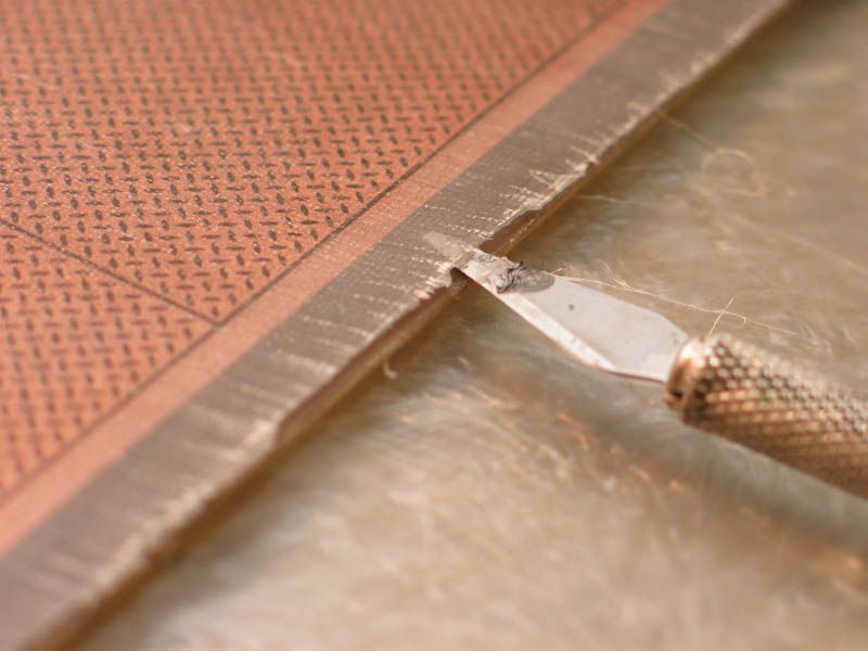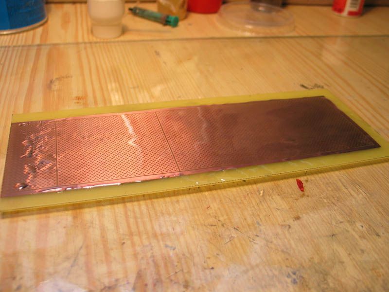 nabízím možnost jak na to. Vystřihněte si z kuprexitu potřebný tvar nůžkami s minimálním přídavkem 5-10 mm z každé strany (kraje budou pravděpodobně podsvíceny). Měděnou plochu vyčistíte