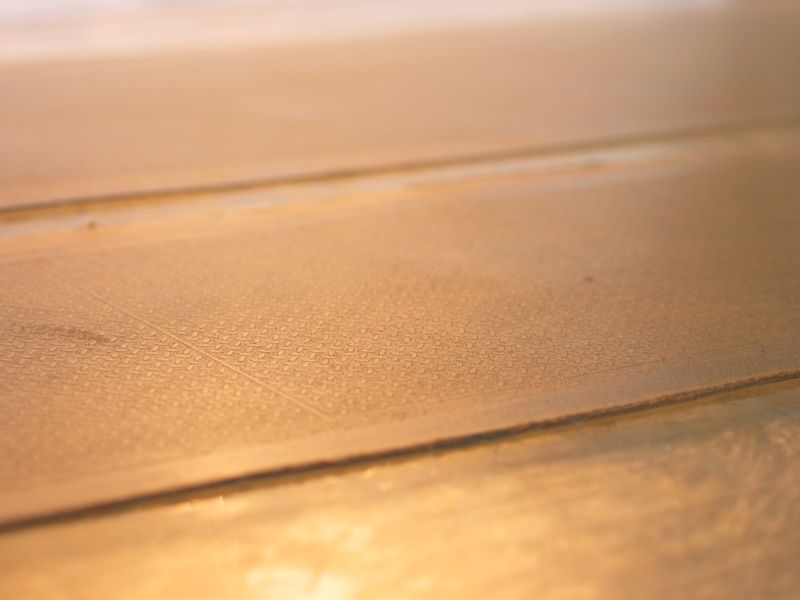 pískem na nádobí čímž odstraníte zoxidovanou vrstvu. Je potřeba, aby deska nebyla mastná, tak doporučuji ji ještě pro jistotu odmastit. Povrch setřete sepraným