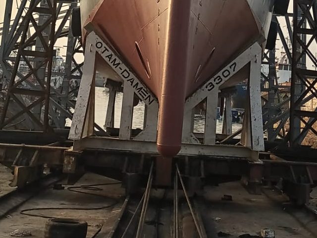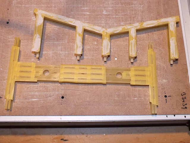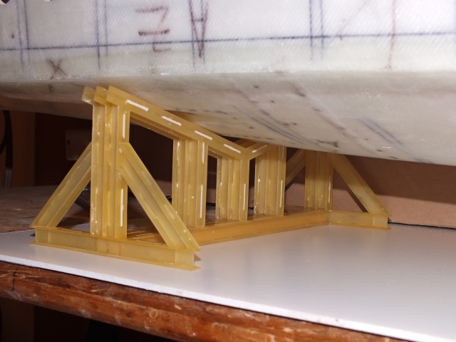 Vzhledem k netradičnímu trupu lodi jsem nechtěl použít plný profil stojánku. Pro vytvoření stojánku lodi jsem jako předlohu zvolil konstrukci, která se používá při vytažení lodi v suchém doku.
