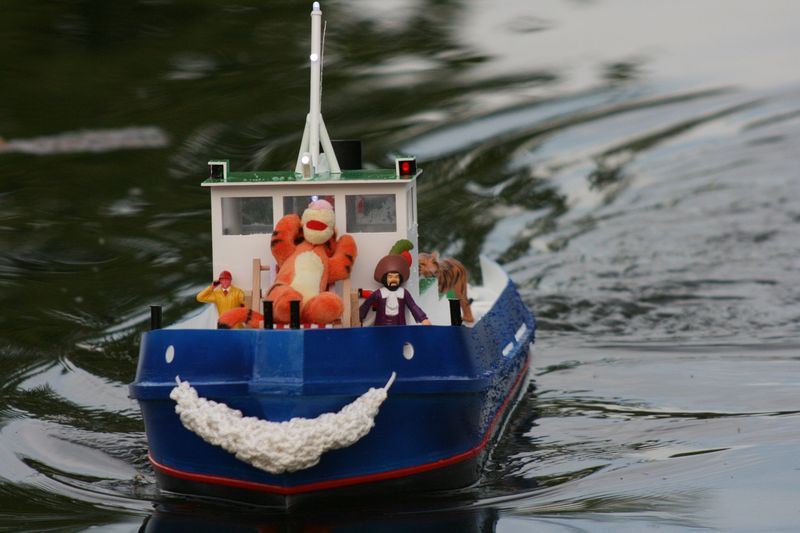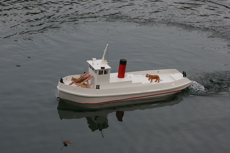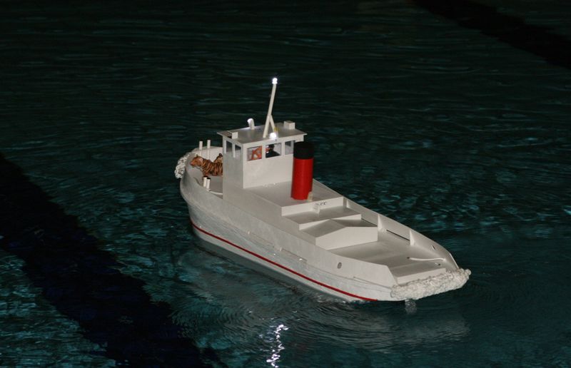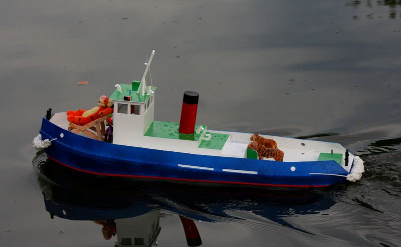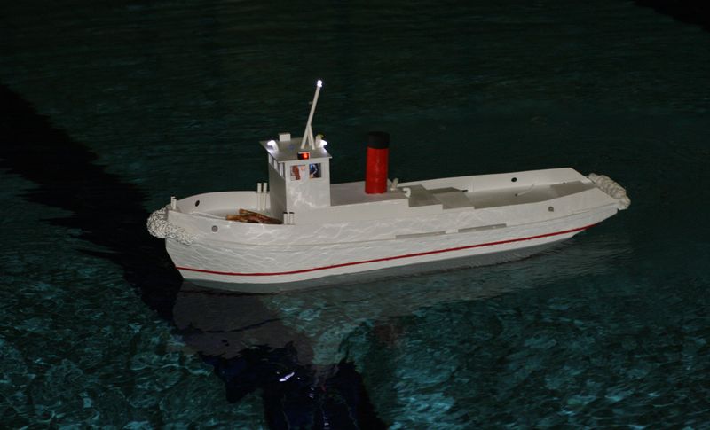 Moje prvni lod podle planku na remorker Jasmina, ktery jsem nasel na tomto webu. Jen se mi zdala trochu mala a tak jsem si planek nechal vytisknout na A0. ABS desky 2mm. Motor je nizkootackovy 700. Sroub trilisty prumer 6cm. Zavazi olovene celkem 10kg.