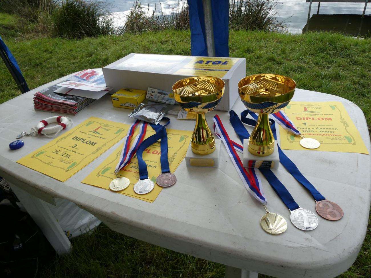 Trochu se to zlepšilo až po obědě, kdy dorazili majitelé plachetnic. Dva z Polska a dva z Prahy jsme doplňovali my dva s Bohoušem. Pod zataženou oblohou jsme za slabého větru do 2 m/s za dvě hodiny stihli 10 soutěžních jízd. Zcela nás převálcovali naši zahraniční hosté. Zvítězil jediný přítomný junior Jan Musiejkiewicz, který tak potvrdil své celkové vítězství seriálu mezi juniory, těsně druhý skončil jeho otec Kamil Musiejkiewicz a na třetím místě se s již větším odstupem umístil Jiří Šejvl. Lubomír Jančík si z Písku odvezl čtvrté místo, za ním jsem skončil já a poslední byl Bohouš.
