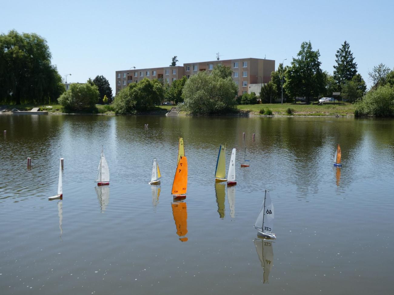 Konečně se nám počasí přiblížilo odpovídajícímu časovému období kalendáře a v Třebíči jsme o víkendu 21. až 22. června u vody zažili dva opravdu krásné letní dny. Letošní účast byla oproti loňsku velmi slušná. Dostavilo se 17 žáků, 7 juniorů a 27 dospěláků. Přihlášených modelů se na vodě objevilo 117. Také hejno zdejšího vodního ptactva se znatelně rozrostlo, ovšem po vyplutí prvních modelů se disciplinovaně kachny stáhly na „svoji“ část rybníka.