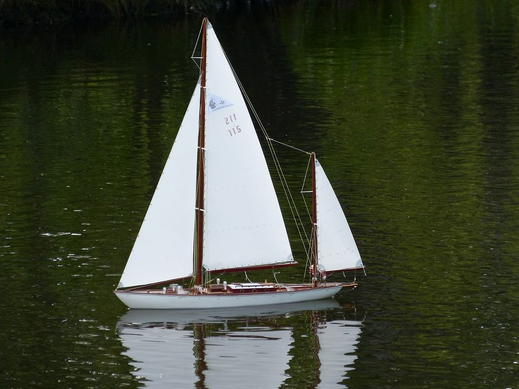 Pak jsem předal štafetu dál a uháněl na regatu plachetnic. V té se mi podařilo dojet do cíle jako druhý, takže jsem se dostal na bednu. Nebylo to nic těžkého, jelikož ze sobotních 11 plachetnic se do nedělního klání zapojilo jen 6 modelů. Větší exodus byl jen u parníků, kde do neděle setrvali pouze majitelé Renownů. Když však Tomáš Kočí po nějakém škobrtnutí vykoupal vysílač, bylo rázem po soutěži.