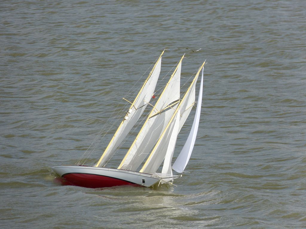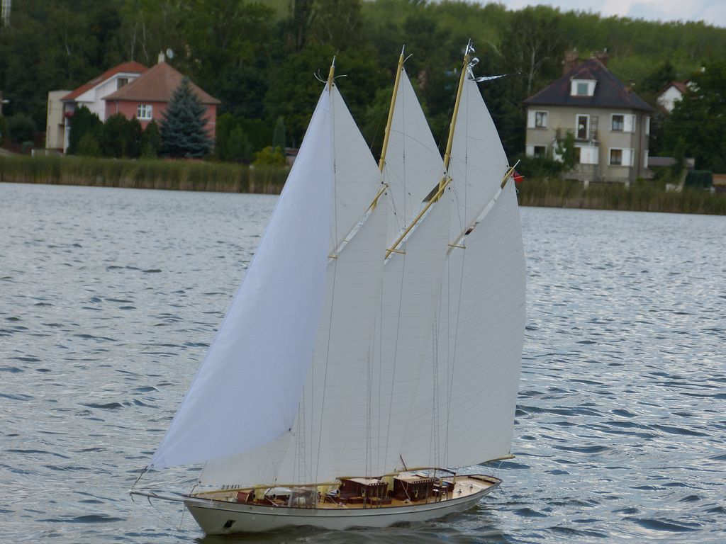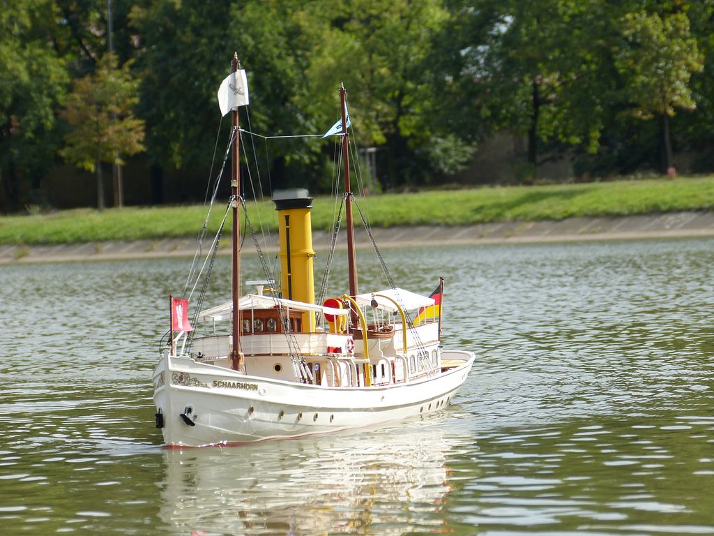 Přestože většinou od plachetnic sprintuji k modelům parníků, tentokrát jsem dopředu věděl, že toho moc k vidění nebude. Při účasti pouhých dvou strojů se těžko přihodí, aby bylo na vodě 5 parníků naráz a rozhodčí nevěděli, koho sledovat dříve. D.S. Schaarhörn, se kterým Jiří Špinar bez zaváhání porazil St. Canute Standy Jedličky, krátce v podpalubí přímo z bombičky zahořel. Naštěstí to dopadlo dobře a pracná nástavba nijak neutrpěla.