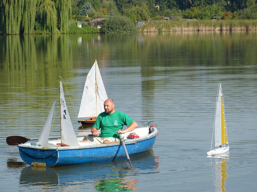 Jelikož bylo startoviště plachetnic až u stavidla, znamenala cesta kolem startoviště F4-A ke startovišti bodovaných maket pořádnou procházku, a tak jsem každý krok vážil. Když nadešla chvíle další sobotní jízdy plachetnic, doslova jsem s plachetnicí v ruce zakopl o Jiřího Špinara, který již nějakou chvíli vedl výše zmiňovanou schůzku