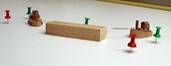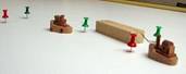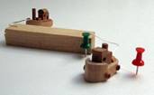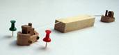 podobě modelu lodě, kterou remorkéry vlečou pomocí vlečných lan po vytyčené