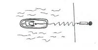 do země cca 1/2 m od linie břehu. Kolík se NESMÍ kývat. Přesvědčte se, že tažné lano vede volně k vodě